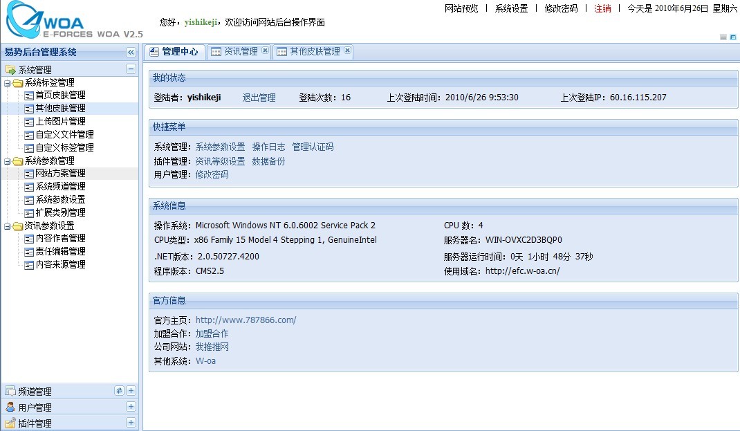 12、易勢CMS網(wǎng)站后臺界面截圖: