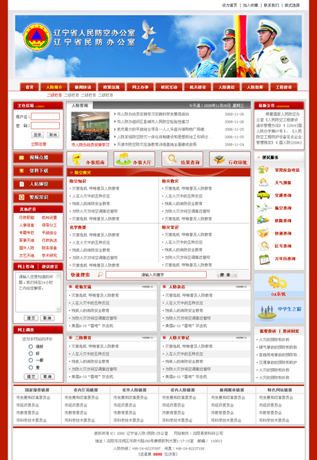 遼寧省人民防空辦公室又稱遼寧省民防辦公室,簡(jiǎn)稱省人防辦或省民防辦(一個(gè)機(jī)構(gòu)兩塊牌子)。遼寧省人民防空辦公室是省政府主管人防工作的綜合職能部門,是省國(guó)防動(dòng)員委員會(huì)的常設(shè)辦事機(jī)構(gòu),受省政府和省軍區(qū)雙重領(lǐng)導(dǎo),擔(dān)負(fù)戰(zhàn)時(shí)防空和平時(shí)防災(zāi)救災(zāi)兩種職能。 |