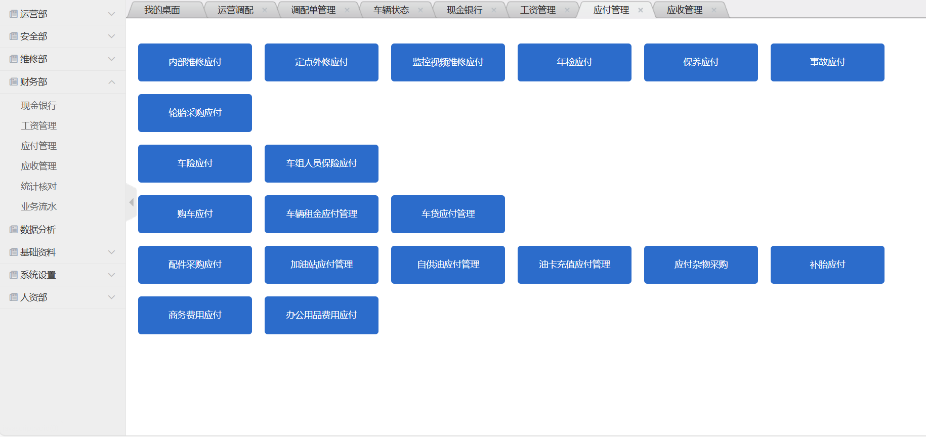 調(diào)度管理、車輛管理、外協(xié)管理、油料管理、應(yīng)收應(yīng)付、工資管理、倉(cāng)儲(chǔ)管理、數(shù)據(jù)決策。